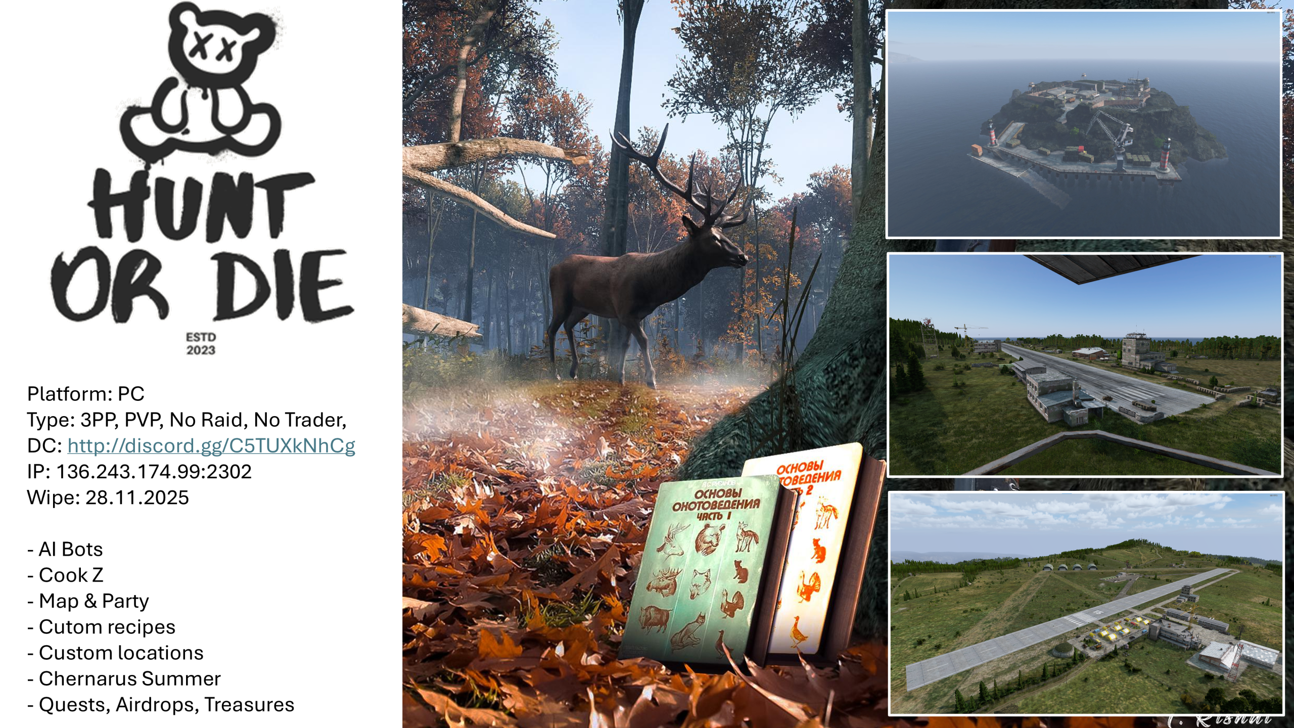 Hi! I am passionate about games and military stuff, which is why I live and breathe DayZ survival. I created this server so that you can experience a real challenge: PVP with no mercy. I like tactics, weapons and fighting for survival – join us and see if you can handle it! 💀🪖